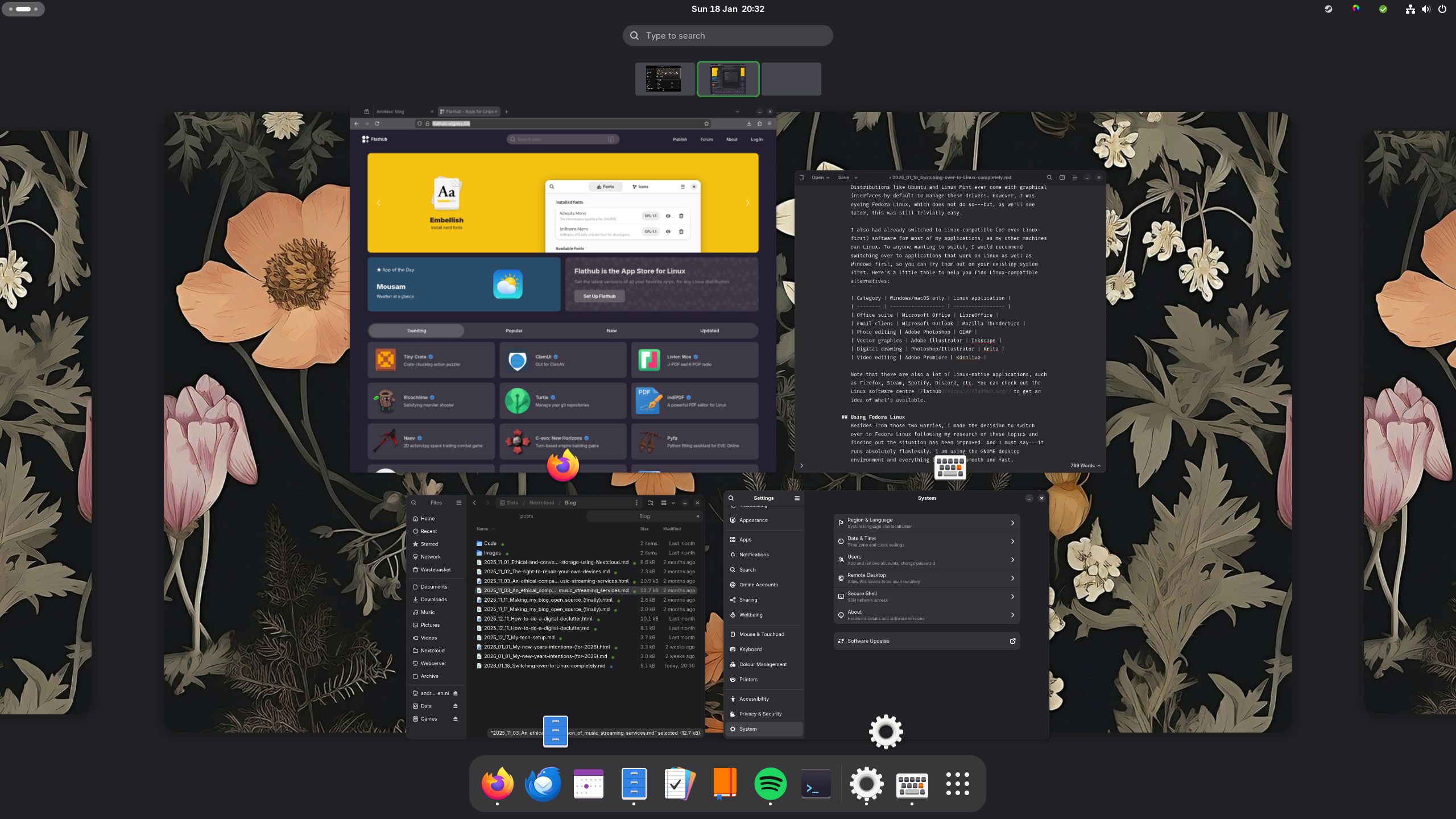 Besides from those two worries, I made the decision to switch over to Fedora Linux following my research on these topics and finding out the situation has been improved. And I must say—it runs absolutely flawlessly. I am using the GNOME desktop environment and everything is buttery smooth and fast.